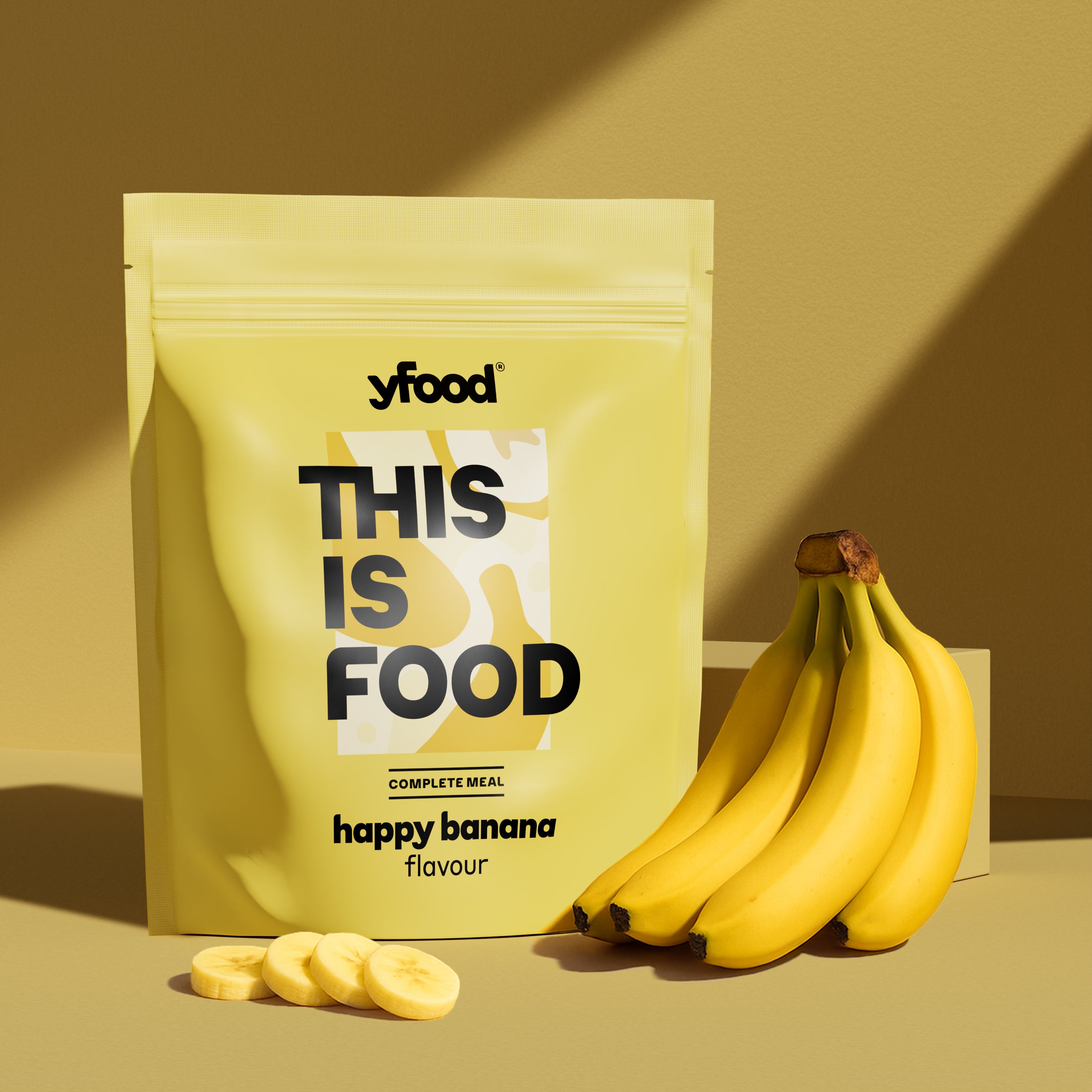 yfood maaltijdvervangende Happy Banana poeder | Een zak van 1 kg bevat 12 volledige maaltijden | Een powder maaltijd is rijk aan alle voedingsstoffen die je lichaam nodig heeft: veel proteïne, vezels en 26 vitaminen en mineralen | De complete maaltijd in de vorm van een powder is de lekkerste op de markt en gebruikt alleen natuurlijke smaken | yfood powder is lactose- en glutenvrij en bevat geen soja of noten | Een portie yfood powder bevat 400 kcal | Ideaal om je gewicht te behouden en als proteïneshake voor tijdens of na het sporten en spiertraining | yfood: gebalanceerd, betaalbaar en een heerlijk alternatief voor ongezond junkfood