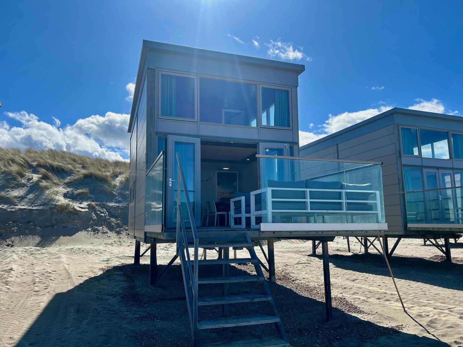 Uniek logeren op het strand in 5-persoons slaapstrandhuisje